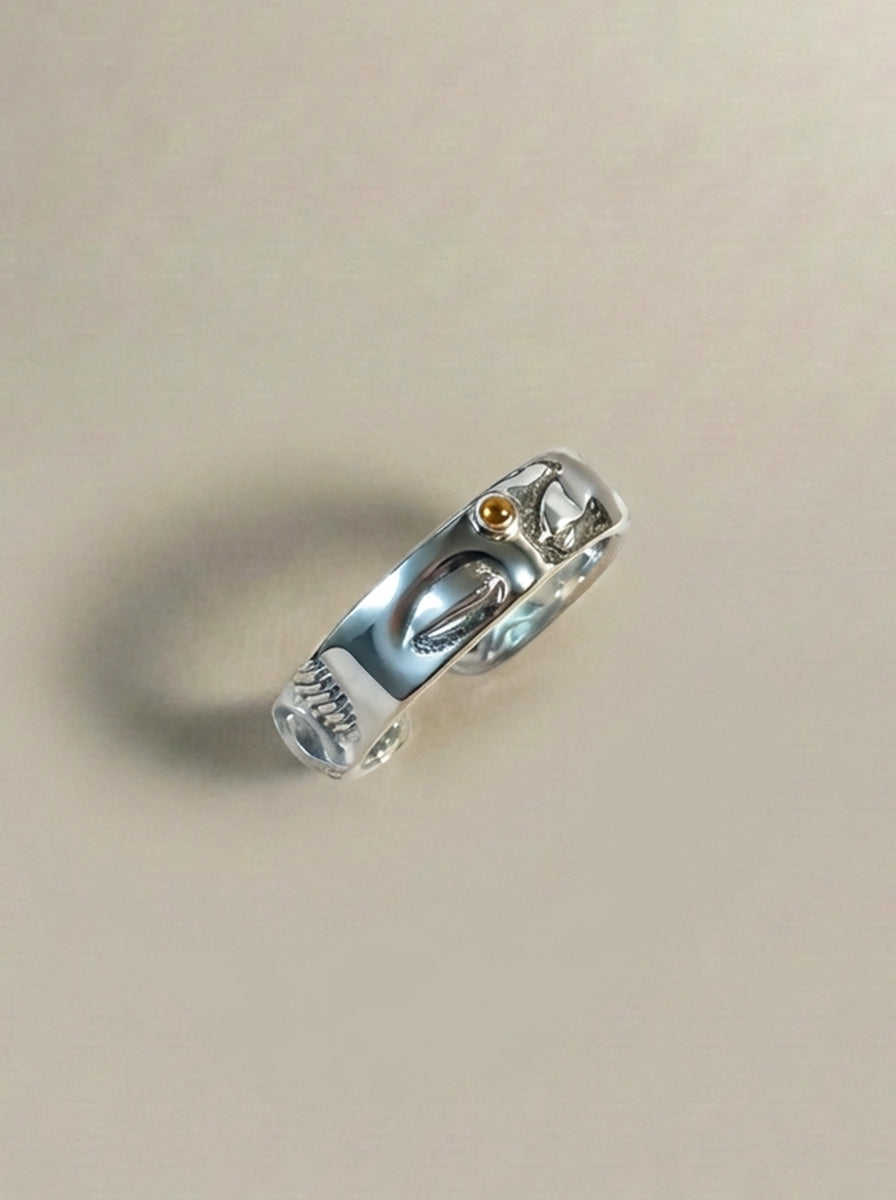 925 Sterling Silver Buddha Face Sutra Ring | Handcrafted Buddhist Mantra Open Band